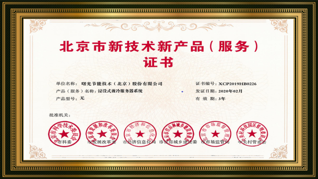 由北京市科委、市发改委、市经信局、市住建委、市市监局和中关村管委会六大部门联合组织的2019年第二批北京市新技术新产品(服务)认定正式发布及颁奖。G22恒峰节能“黑科技”——全浸没液冷服务器解决方案,具有领先科技优势,获得新技术新产品认定!